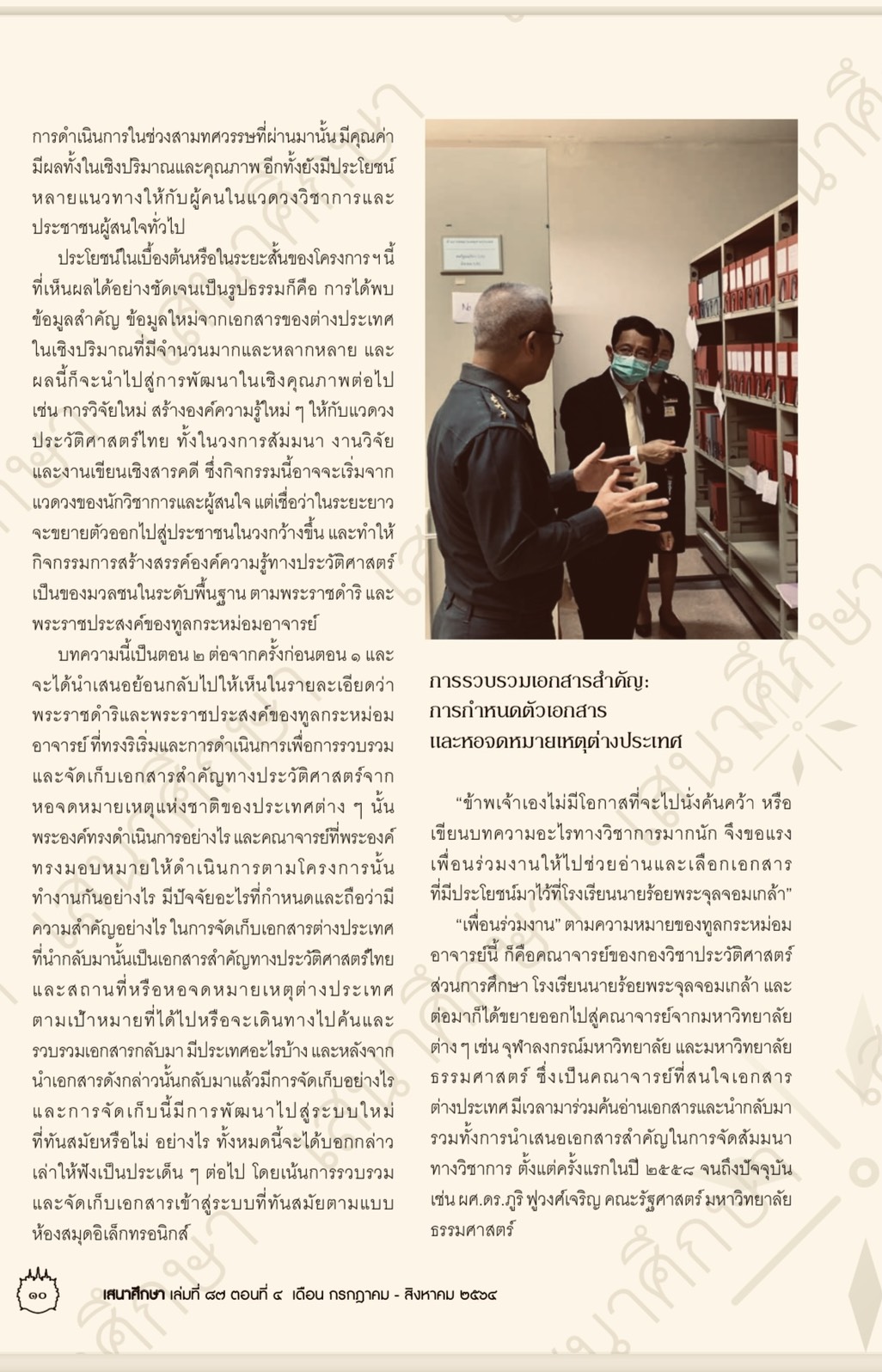 ตอน ๒ เอกสารสำคัญทางประวัตอศาสตร์จากต่างประเทศ : การรวบรวมและการจัดเก็บ